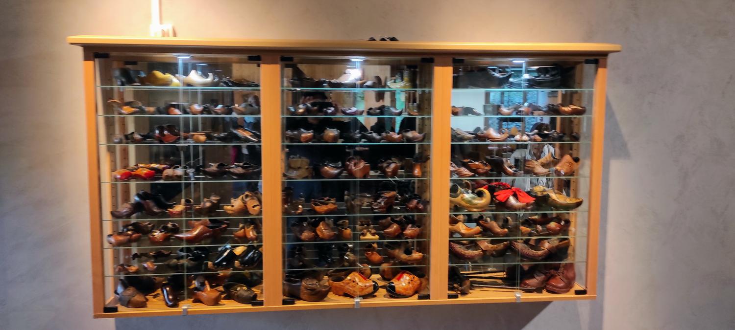 Danach gingen wir in das Innere des Museums, wo uns dann ein weiterer Experte, Herr Rithie, die weiteren Arbeitsgänge mit Maschinen für die Herstellung von Holzschuhen erläuterte und diese auch laufen ließ. Informationstafeln mit Musterstücken erläutern rund um den abgesperrten Bereich der Maschinen die vielen Arbeitsgänge, bis ein 'Sabot' entsteht. Zum Schluss gab es dann noch eine Filmvorführung, in der gezeigt wurde, wie ein Holzschuh komplett in harter Handarbeit entstand.