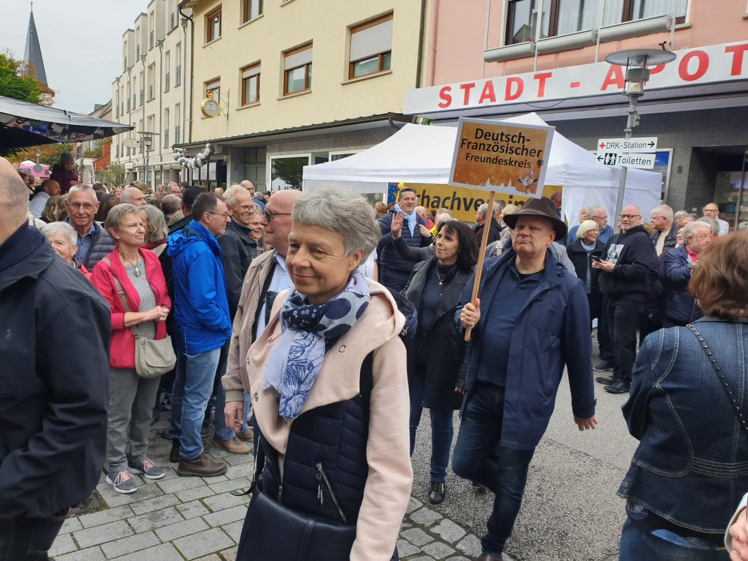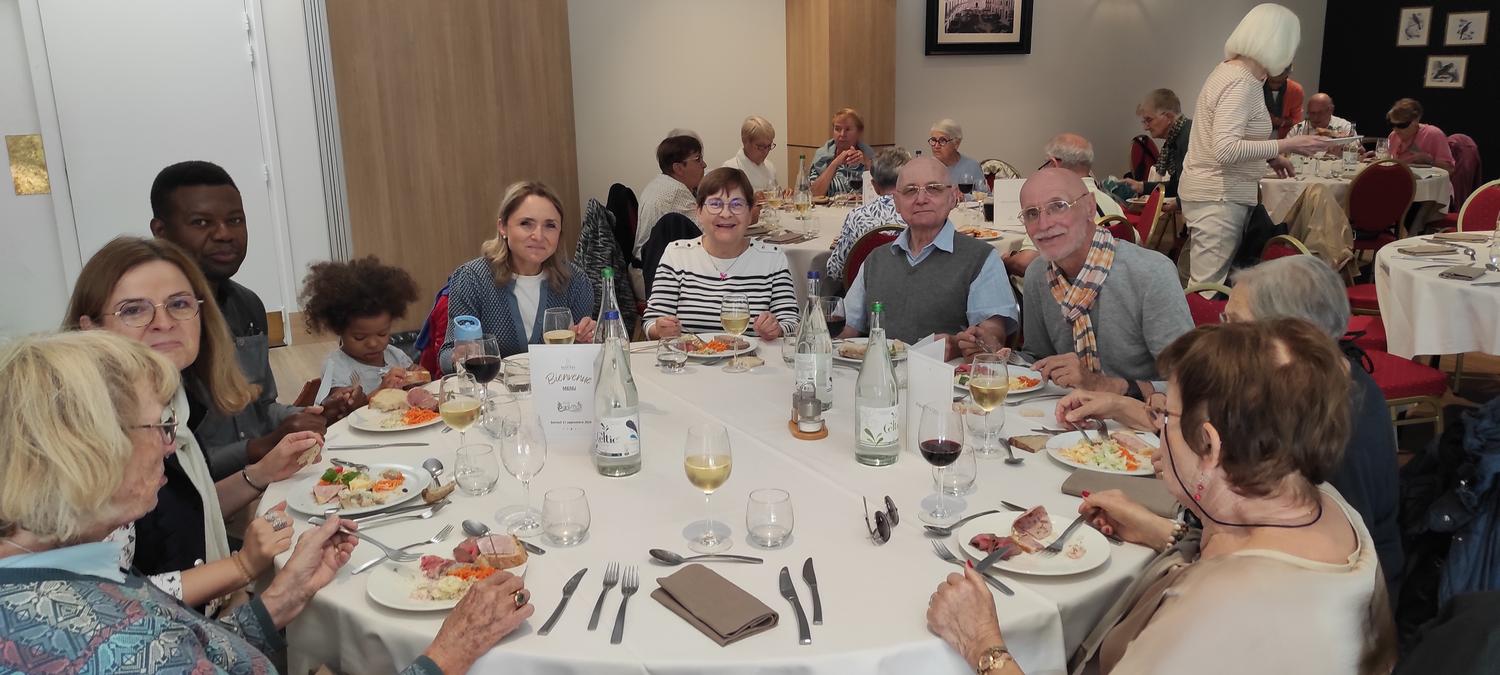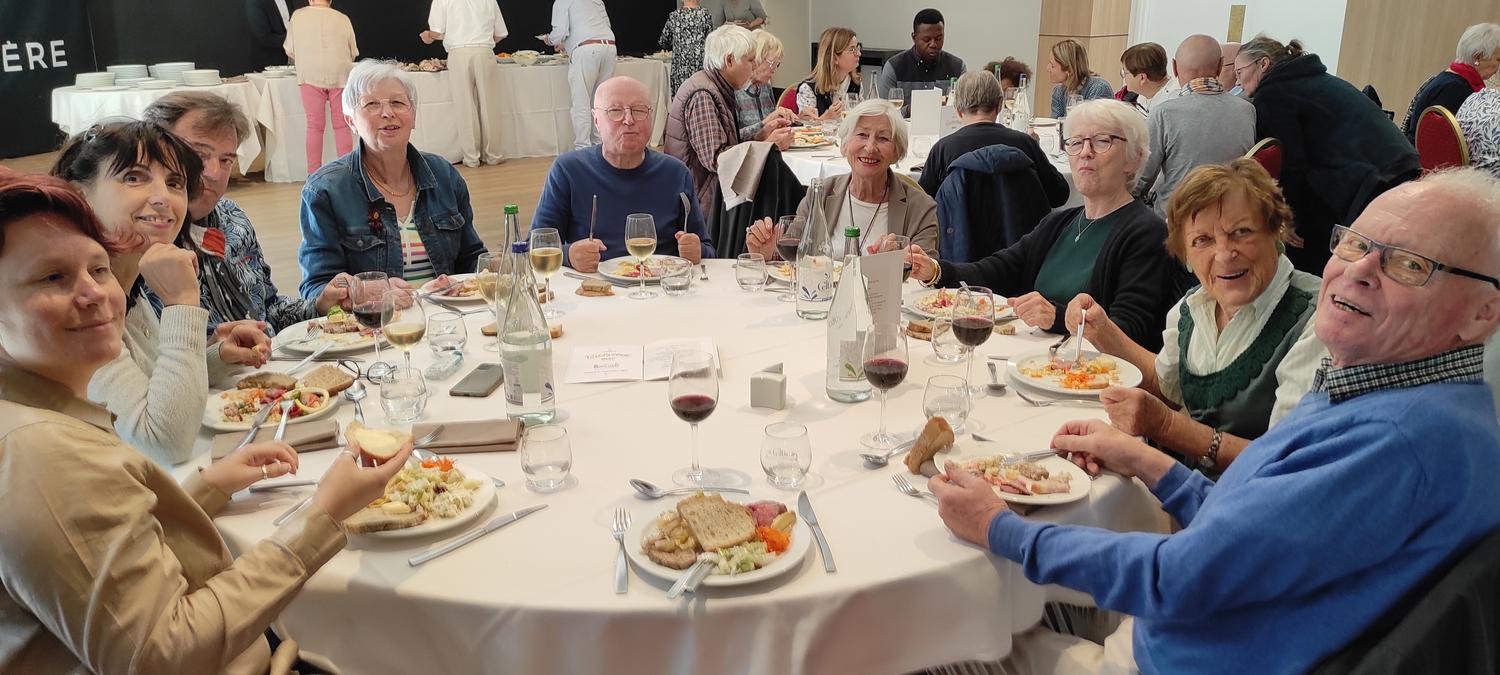 Nach dem Abstieg nach Homburg hinunter, trafen wir uns im Homburger Hof, um mit unseren Freunden das Mittagessen einzunehmen. Bei leckerem Braten und Knödeln sowie einem Eisdessert konnten wir uns angeregt in der Sprache unserer Wahl unterhalten. Es gelingt uns immer wieder frankophone Deutsche und deutschsprachige Franzosen auf die gesamte Gruppe so zu verteilen, dass dies kein Problem ist …