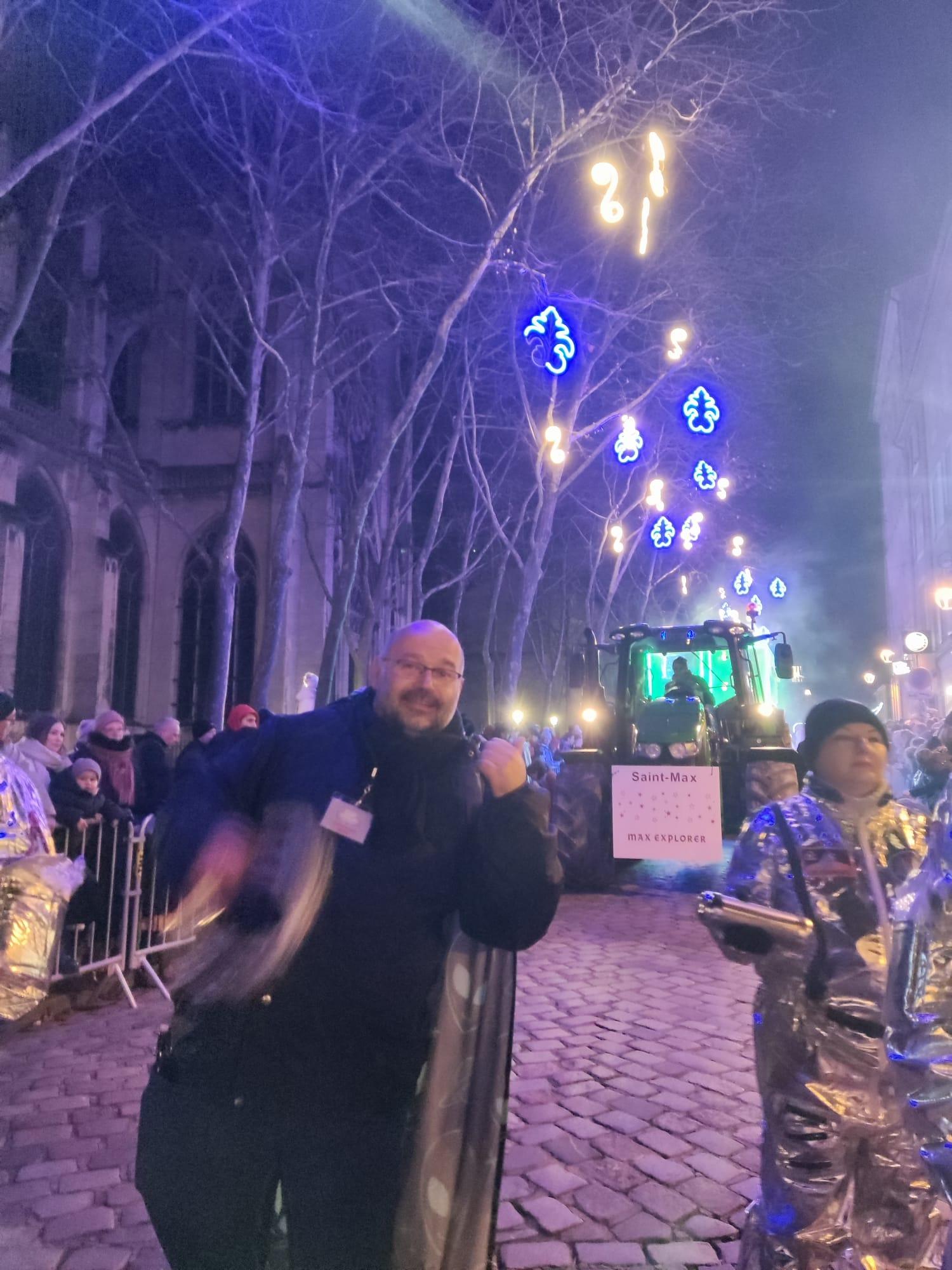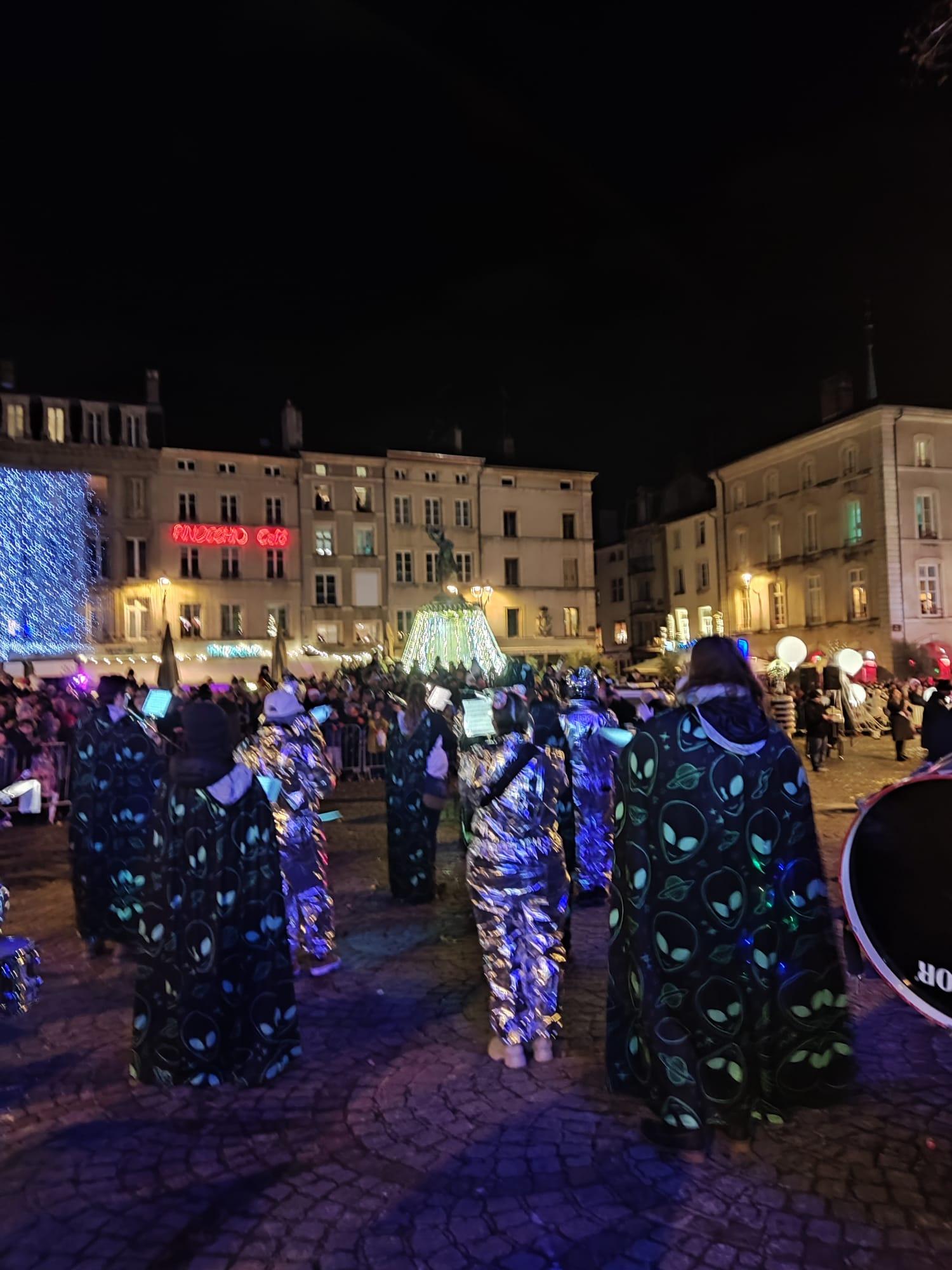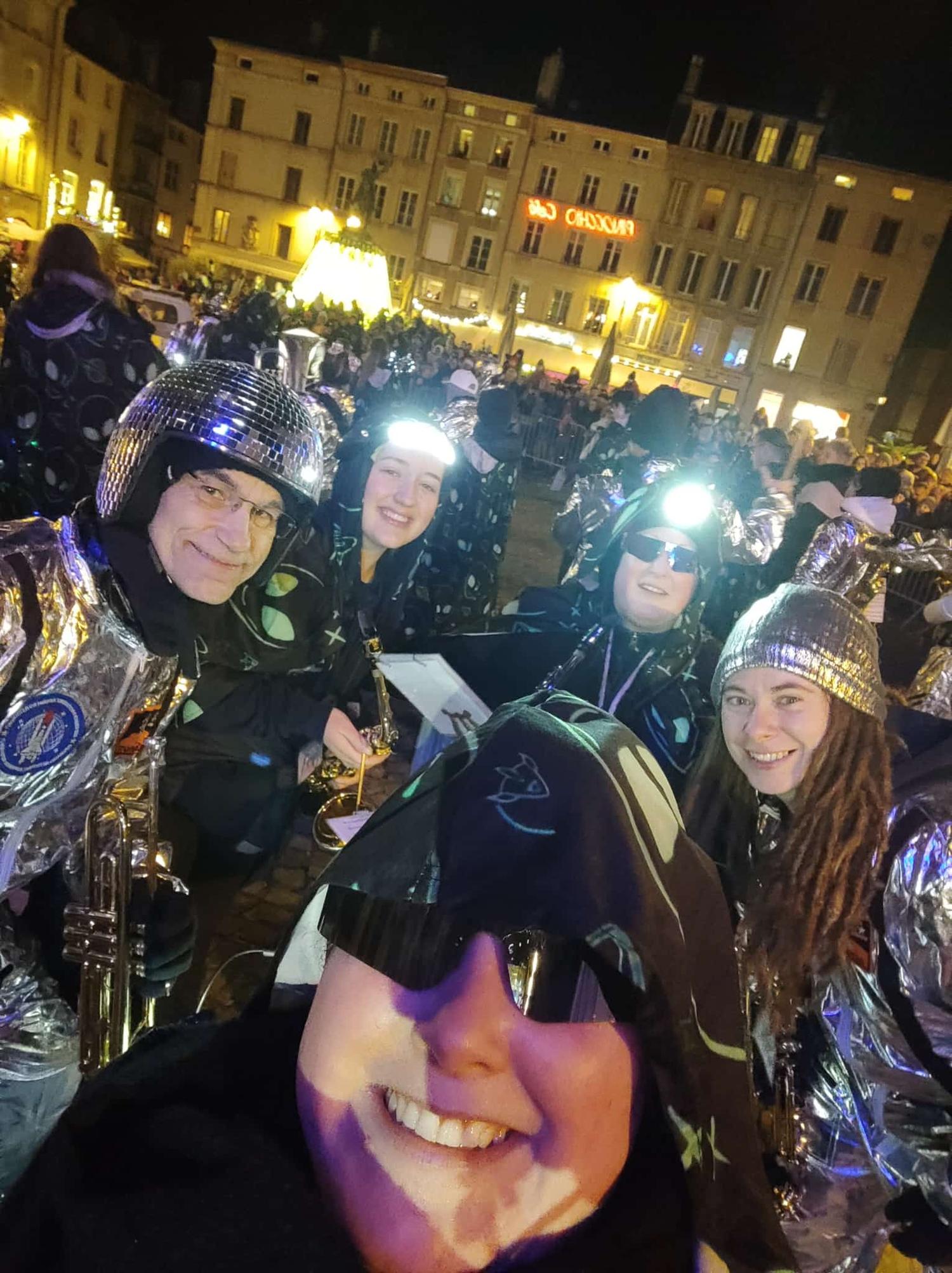 Gegen 7:00 Uhr ging es am Schulzentrum los, nachdem Gepäckstücke und Instrumente eingeräumt waren. Gegen 11:30 trafen wir zuerst in Saint-Max ein, wo wir von der Stadtverwaltung und unserem CdJ sehr herzlich empfangen wurden. Die Vertreter der Stadt Walldorf bedankten sich sehr und übermittelten herzliche Grüße von Bürgermeister Renschler, der leider erkrankt war und nicht nach Saint-Max reisen konnte. Nach den offiziellen Reden spielte die Stadtkapelle gemeinsam mit Musikern der Gemeinde Saint-Max zunächst unsere beiden Nationalhymnen, um danach mit einem mitreißenden Programm die Anwesenden zu begeistern. Gestärkt beim gemeinsamen Mittagessen wurde es dann schon Zeit, die Instrumente für den Saint-Nicolas-Umzug von Nancy bereitzumachen. Von unseren Maxois wurden wir an unseren Startpunkt geleitet, von wo wir dann drei Stunden durch Nancy bis zum Zielpunkt an der Place Stanislas marschierten. An den Umzugsbesuchern vorbei, die zahlreich erschienen waren, marschierten wir mit viel Vergnügen und spielten vor einem sehr dankbaren Publikum, das uns reichlich Applaus spendete. Am Abend trafen sich dann noch einmal Vertreter der beiden Gemeinden sowie einige Musiker der Stadtkapelle, um sich in gepflegter Konversation zu allerlei deutsch-französischen Themen auszutauschen. Am Sonntag schließlich hatte Saint-Max seinen Umzug, der dann nicht mehr ganz so anstrengend war, aber nicht minder schön, da sich unsere Partnergemeinde erneut mächtig ins Zeug mit ihren Themenwagen gelegt hatte. Der Umzug endete mit einer Nikolaus-Lightshow und -Feuerwerk am Château Pont de la Meurthe. Dort bedankten wir uns noch von unseren Maxois sehr herzlich für ihre Gastfreundschaft und kehrten gegen 21:00 Uhr wieder wohlbehalten nach Walldorf zurück.