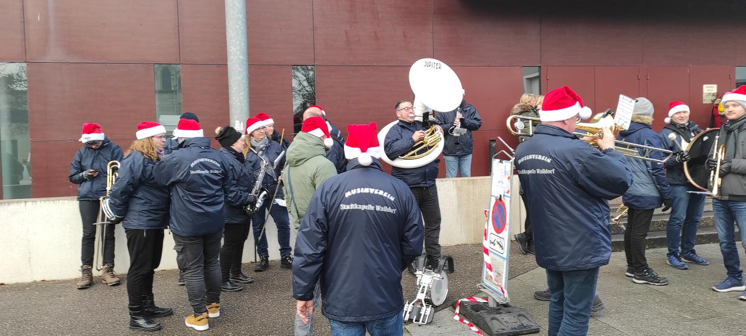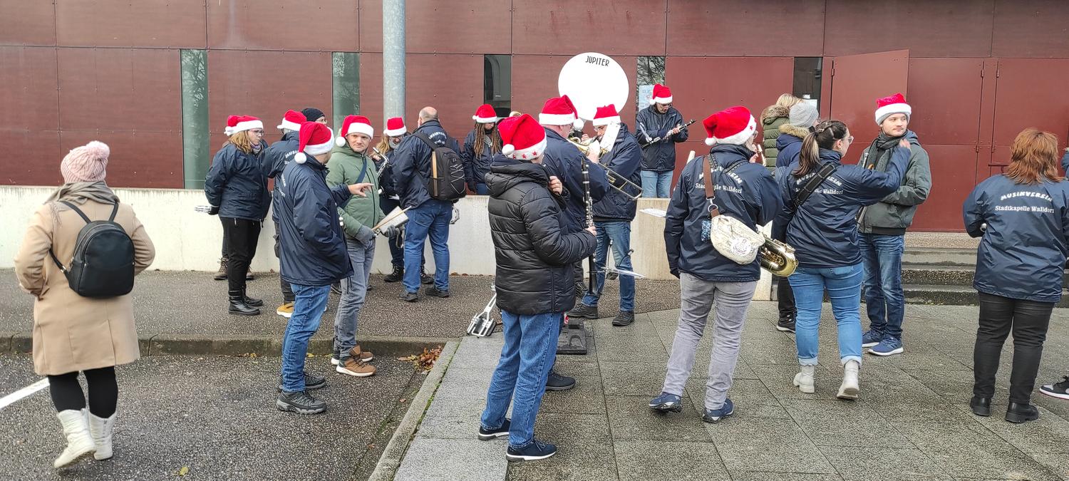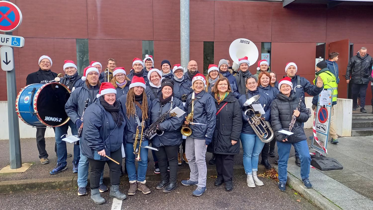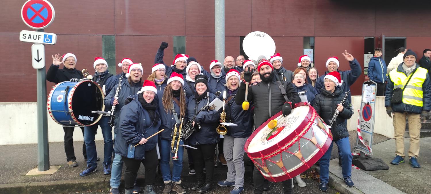 Gegen 7:00 Uhr ging es am Schulzentrum los, nachdem Gepäckstücke und Instrumente eingeräumt waren. Gegen 11:30 trafen wir zuerst in Saint-Max ein, wo wir von der Stadtverwaltung und unserem CdJ sehr herzlich empfangen wurden. Die Vertreter der Stadt Walldorf bedankten sich sehr und übermittelten herzliche Grüße von Bürgermeister Renschler, der leider erkrankt war und nicht nach Saint-Max reisen konnte. Nach den offiziellen Reden spielte die Stadtkapelle gemeinsam mit Musikern der Gemeinde Saint-Max zunächst unsere beiden Nationalhymnen, um danach mit einem mitreißenden Programm die Anwesenden zu begeistern. Gestärkt beim gemeinsamen Mittagessen wurde es dann schon Zeit, die Instrumente für den Saint-Nicolas-Umzug von Nancy bereitzumachen. Von unseren Maxois wurden wir an unseren Startpunkt geleitet, von wo wir dann drei Stunden durch Nancy bis zum Zielpunkt an der Place Stanislas marschierten. An den Umzugsbesuchern vorbei, die zahlreich erschienen waren, marschierten wir mit viel Vergnügen und spielten vor einem sehr dankbaren Publikum, das uns reichlich Applaus spendete. Am Abend trafen sich dann noch einmal Vertreter der beiden Gemeinden sowie einige Musiker der Stadtkapelle, um sich in gepflegter Konversation zu allerlei deutsch-französischen Themen auszutauschen. Am Sonntag schließlich hatte Saint-Max seinen Umzug, der dann nicht mehr ganz so anstrengend war, aber nicht minder schön, da sich unsere Partnergemeinde erneut mächtig ins Zeug mit ihren Themenwagen gelegt hatte. Der Umzug endete mit einer Nikolaus-Lightshow und -Feuerwerk am Château Pont de la Meurthe. Dort bedankten wir uns noch von unseren Maxois sehr herzlich für ihre Gastfreundschaft und kehrten gegen 21:00 Uhr wieder wohlbehalten nach Walldorf zurück.