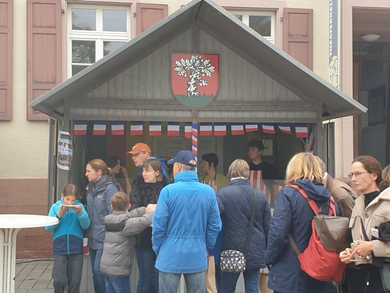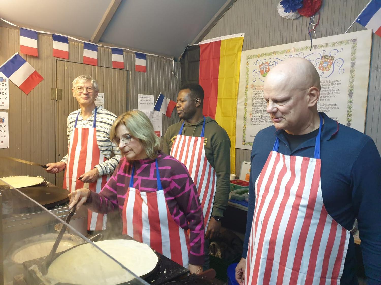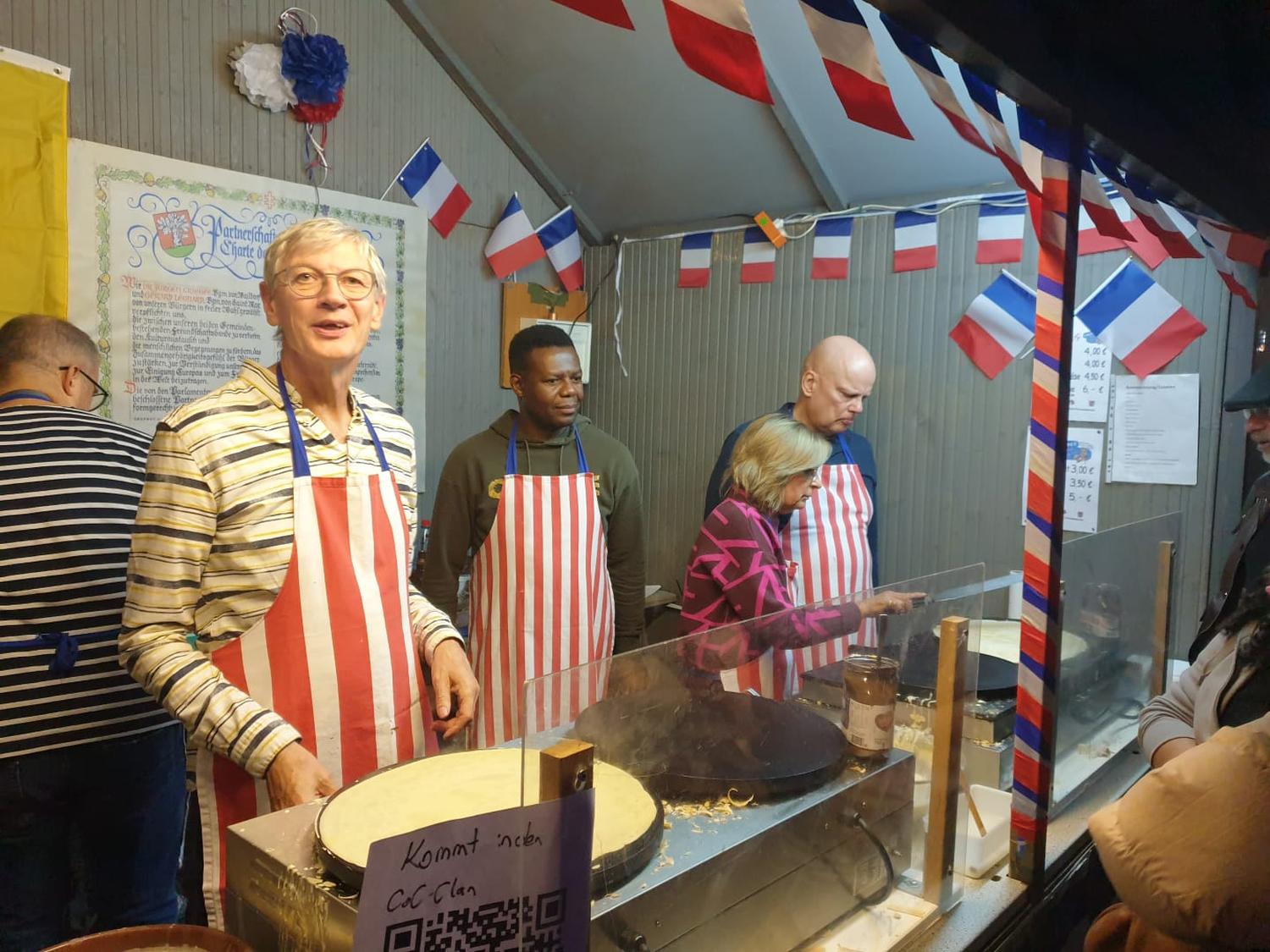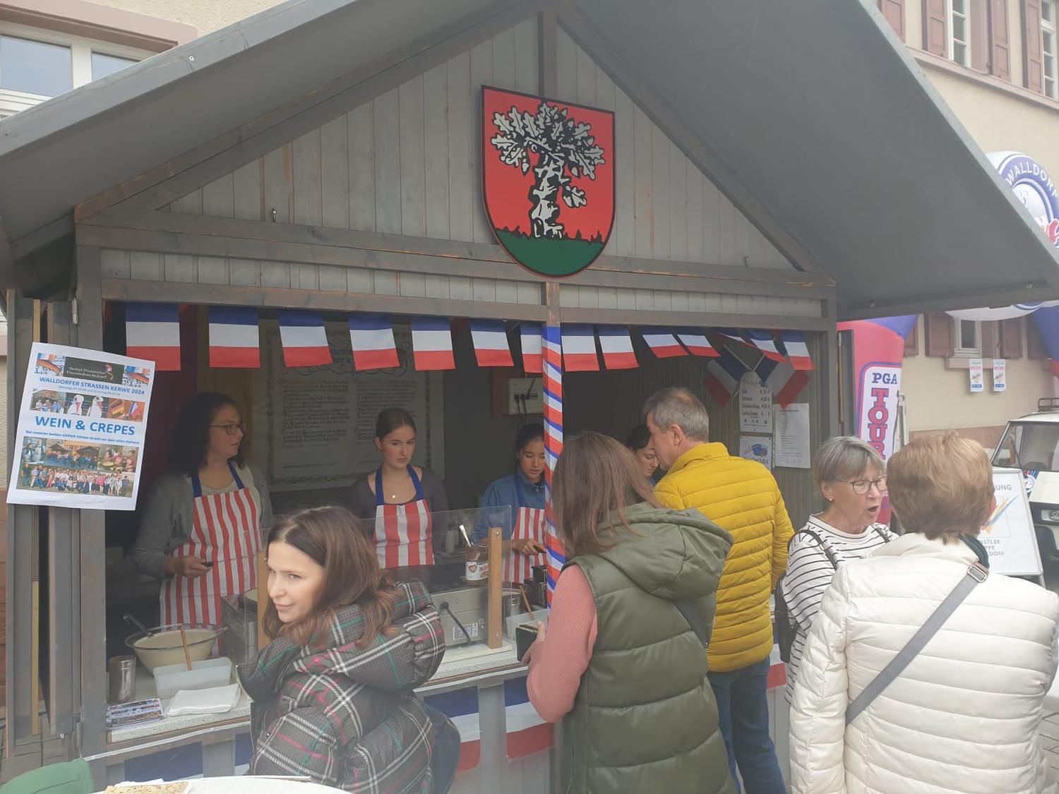 Auch 2024 konnten Sie wieder unsere Crêpes am Stand auf der Walldorfer Kerwe vor dem Alten Rathaus genießen. Im Stand rechts von uns konnten Sie sich bei unseren Freunden aus St. Max wieder ein gutes Glas Wein oder Champagner aus Frankreich genehmigen. Viele Besucher der Walldorfer Kerwe nahmen unser Angebot von Crêpes sowie der Getränke unserer Franzosen gerne an. Dies ist umso erfreulicher, da auch dieses Jahr weitere Stände auf der Kerwe Crêpes anboten.
