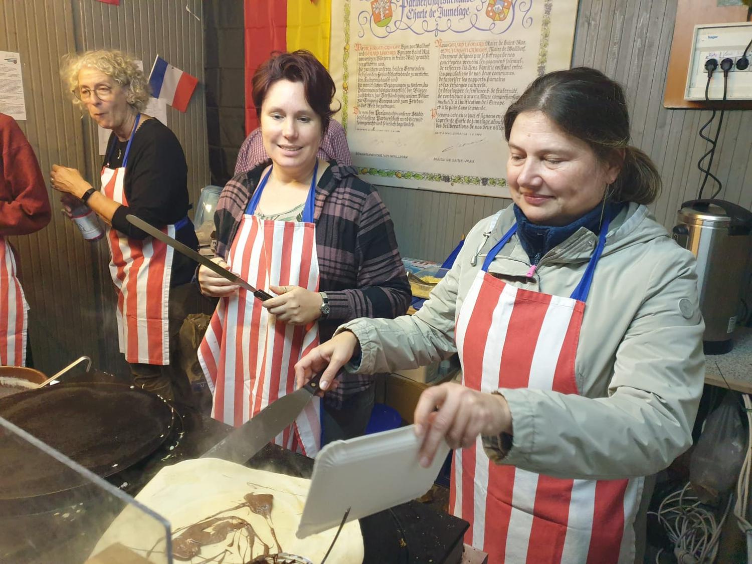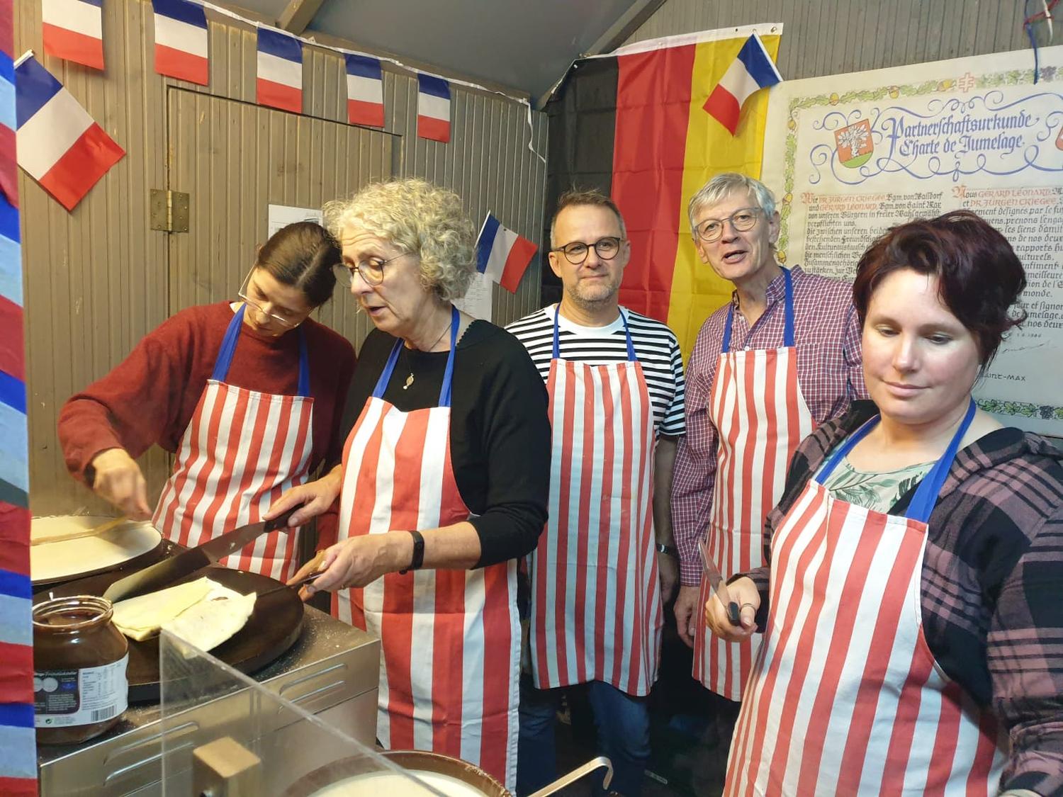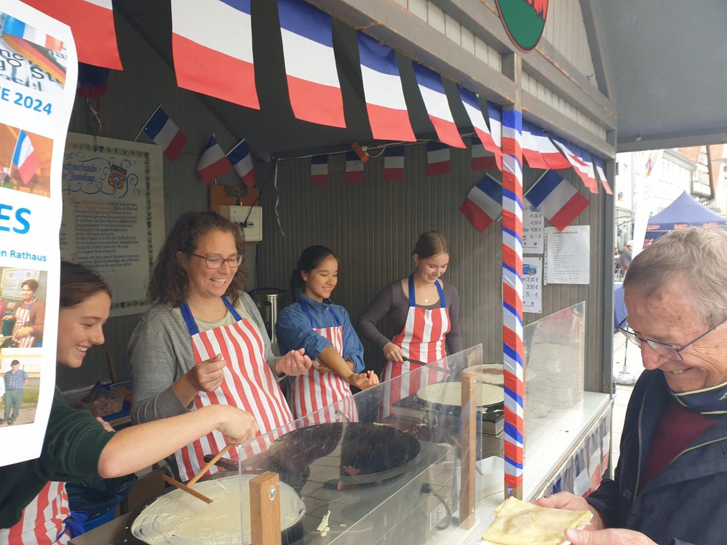 Auch 2024 konnten Sie wieder unsere Crêpes am Stand auf der Walldorfer Kerwe vor dem Alten Rathaus genießen. Im Stand rechts von uns konnten Sie sich bei unseren Freunden aus St. Max wieder ein gutes Glas Wein oder Champagner aus Frankreich genehmigen. Viele Besucher der Walldorfer Kerwe nahmen unser Angebot von Crêpes sowie der Getränke unserer Franzosen gerne an. Dies ist umso erfreulicher, da auch dieses Jahr weitere Stände auf der Kerwe Crêpes anboten.