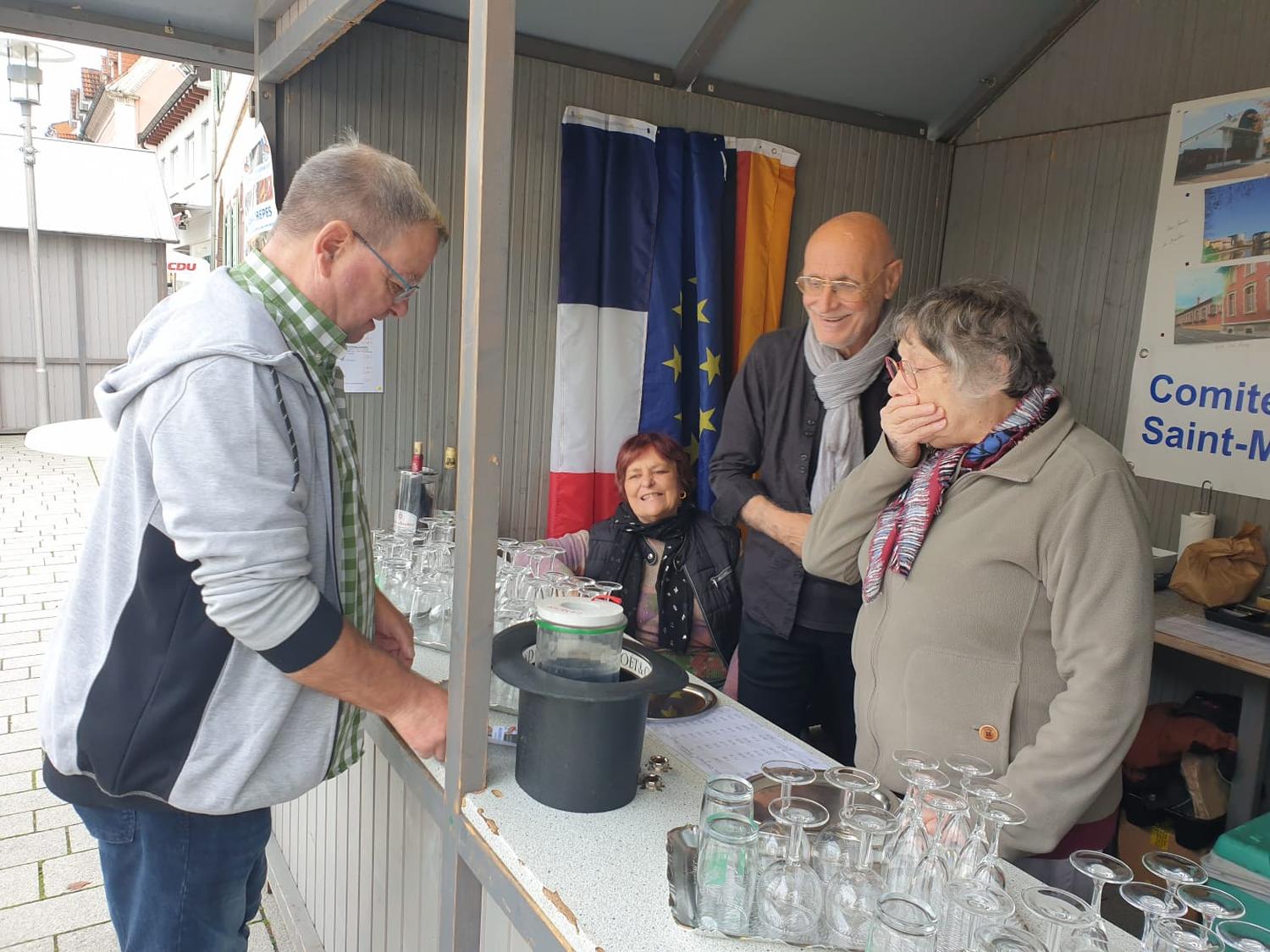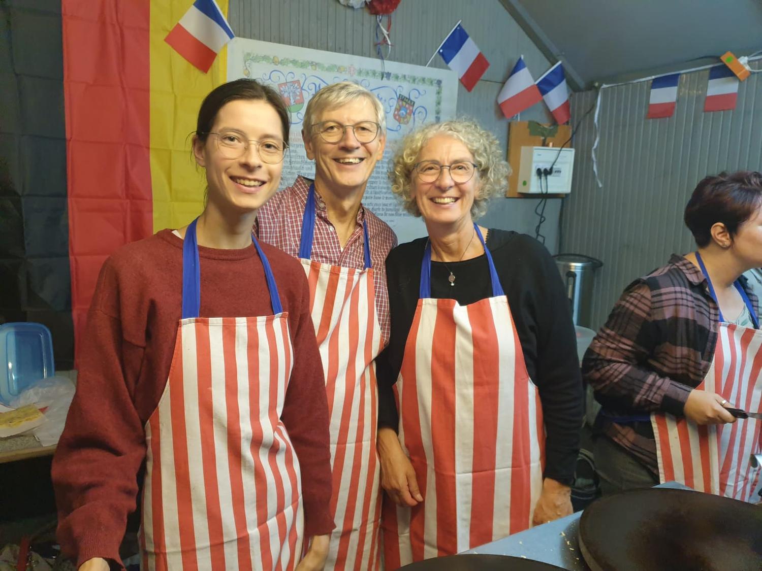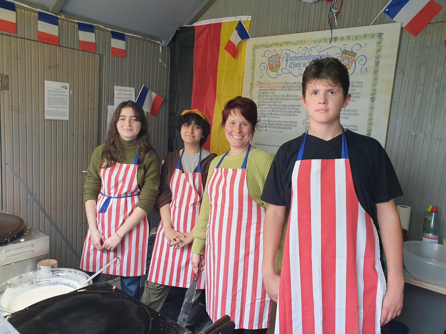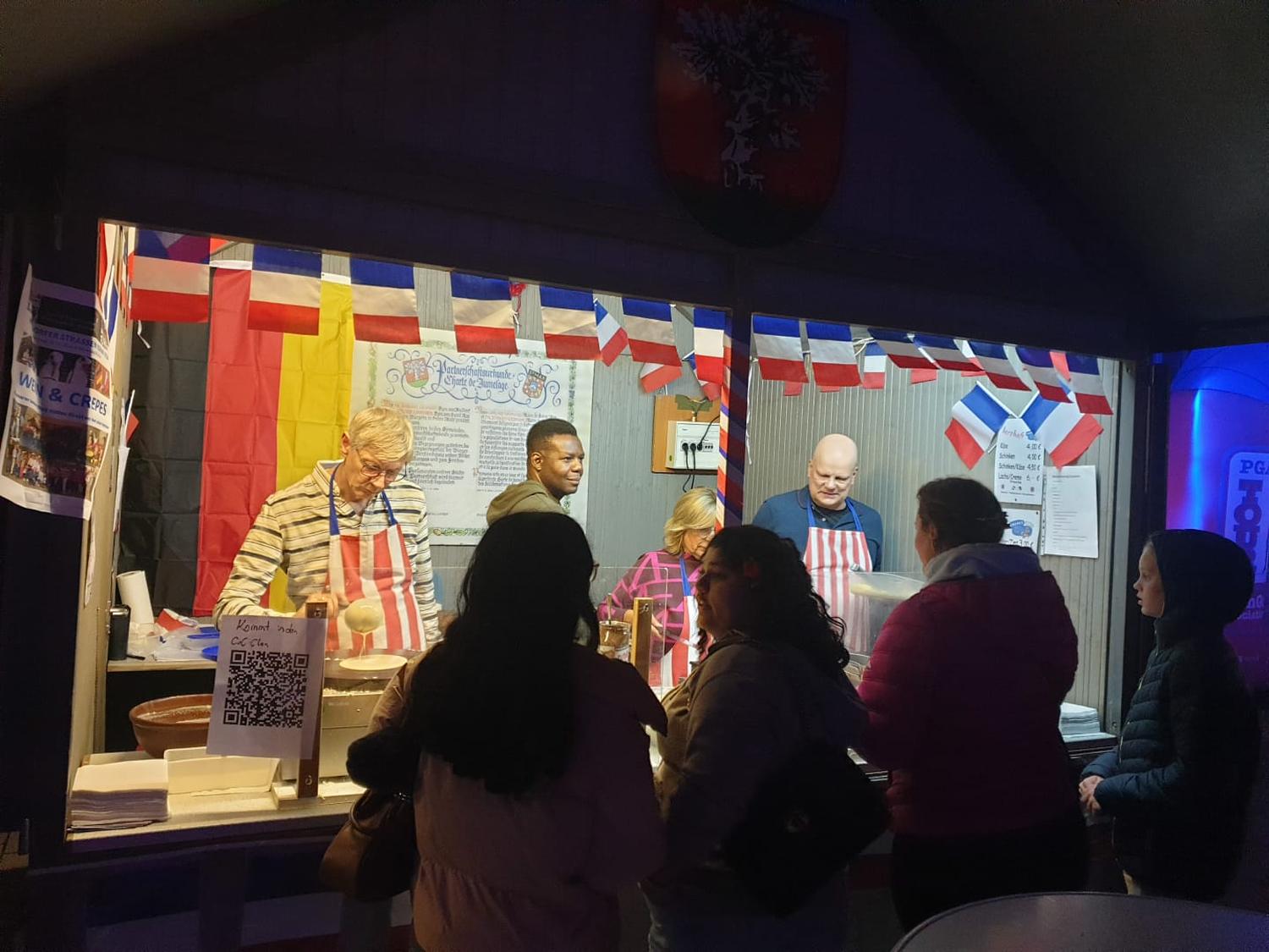 Auch 2024 konnten Sie wieder unsere Crêpes am Stand auf der Walldorfer Kerwe vor dem Alten Rathaus genießen. Im Stand rechts von uns konnten Sie sich bei unseren Freunden aus St. Max wieder ein gutes Glas Wein oder Champagner aus Frankreich genehmigen. Viele Besucher der Walldorfer Kerwe nahmen unser Angebot von Crêpes sowie der Getränke unserer Franzosen gerne an. Dies ist umso erfreulicher, da auch dieses Jahr weitere Stände auf der Kerwe Crêpes anboten.